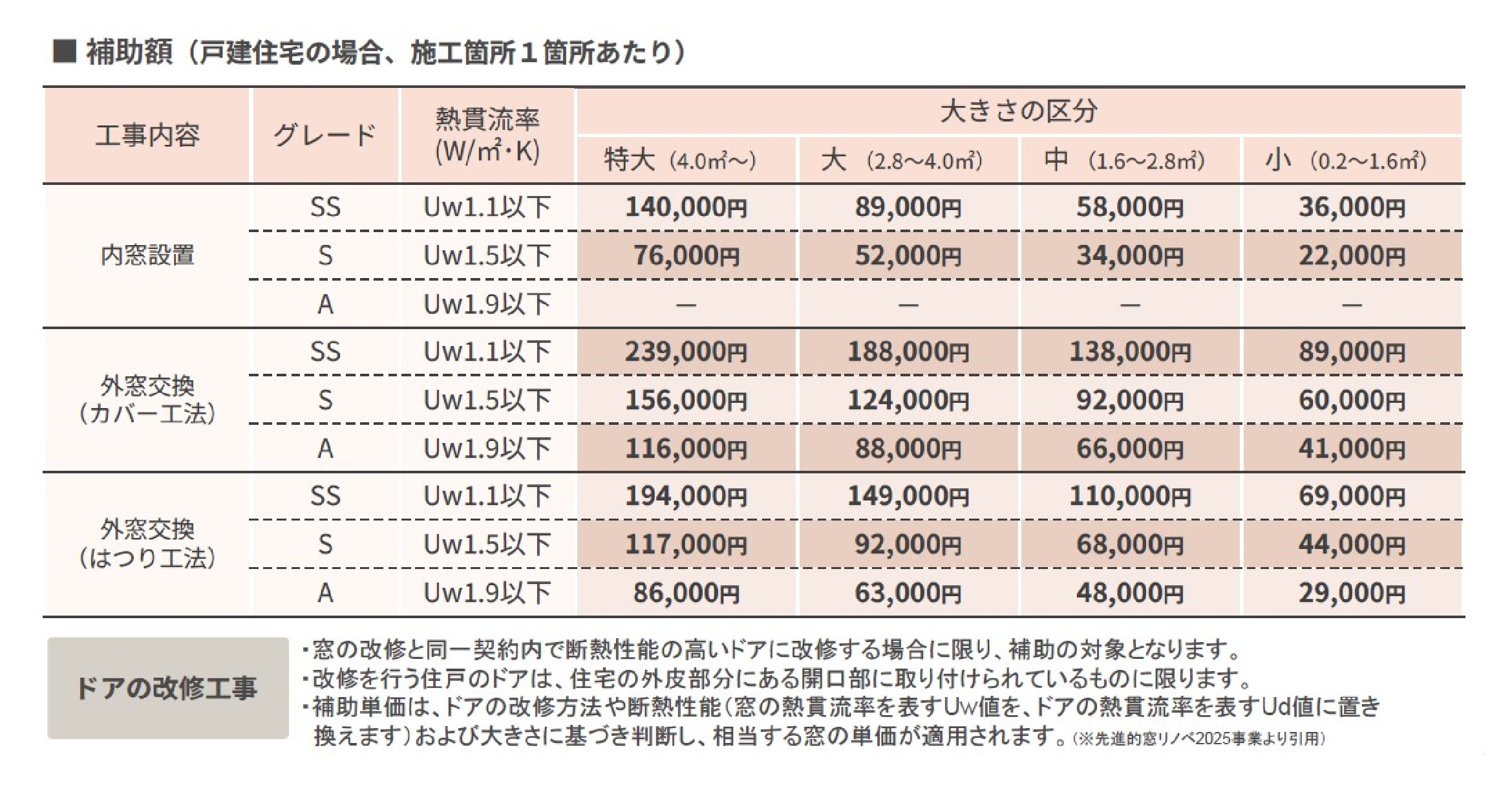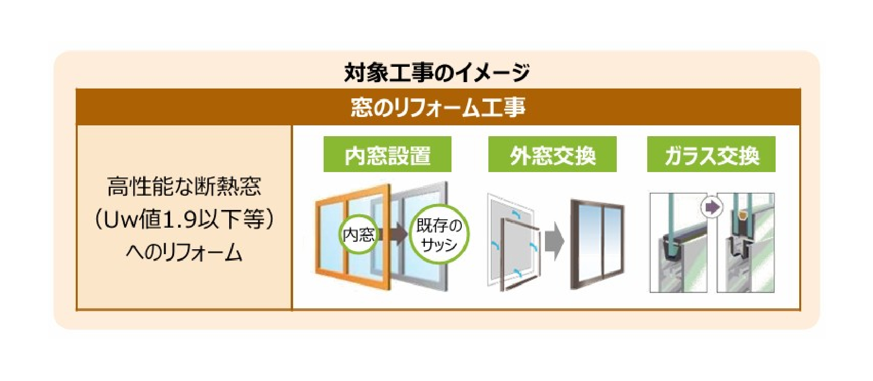 ㊟ドアの改修工事は窓の改修と同一契約内で、断熱性能の高いドアに改修する場合に限り、補助対象となります
